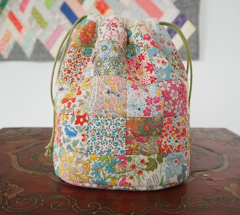 Patchwork Drawstring Bag Pattern Made From Cotton Quilt Etsy